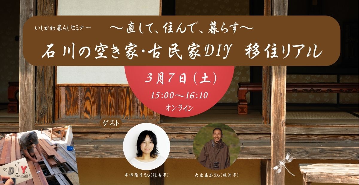 UIターン セミナー 移住 起業【3/7(土)】いしかわ暮らしセミナー『直して、住んで、暮らす。』石川の空き家・古民家DIY移住リアル~