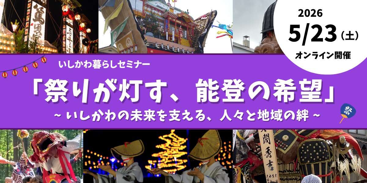 UIターン セミナー 地域おこし協力隊 移住【5/23(土)オンライン開催】いしかわ暮らしセミナー 「祭りが灯す、能登の希望」~いしかわの未来を支える、人々の地域の絆~