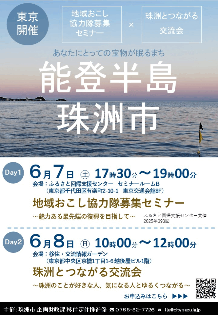【開催案内】地域おこし協力隊募集セミナー&珠洲とつながる交流会