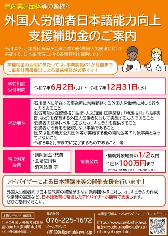 【ご案内】外国人労働者日本語能力向上支援補助金