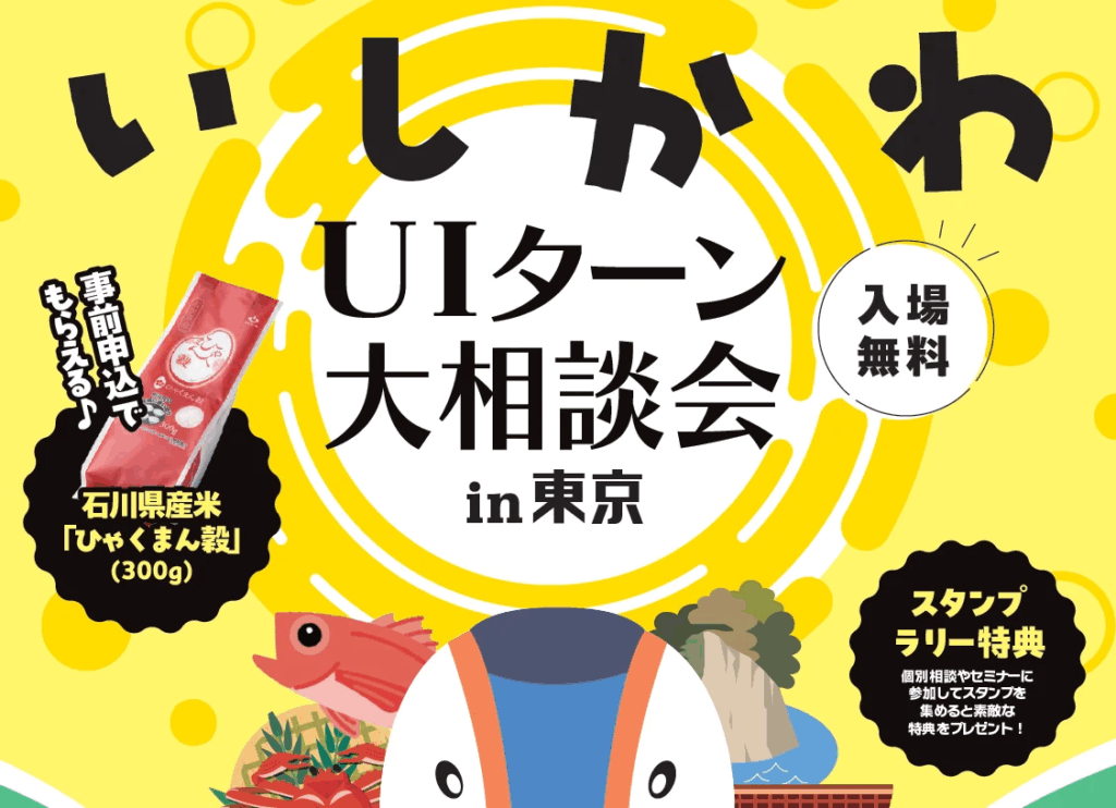 『いしかわUIターン大相談会』は石川県の企業・自治体が東京に集結する年に一度の大相談会です。予約なしでもお越し頂けますので、この機会にぜひ会場へお越しください。
