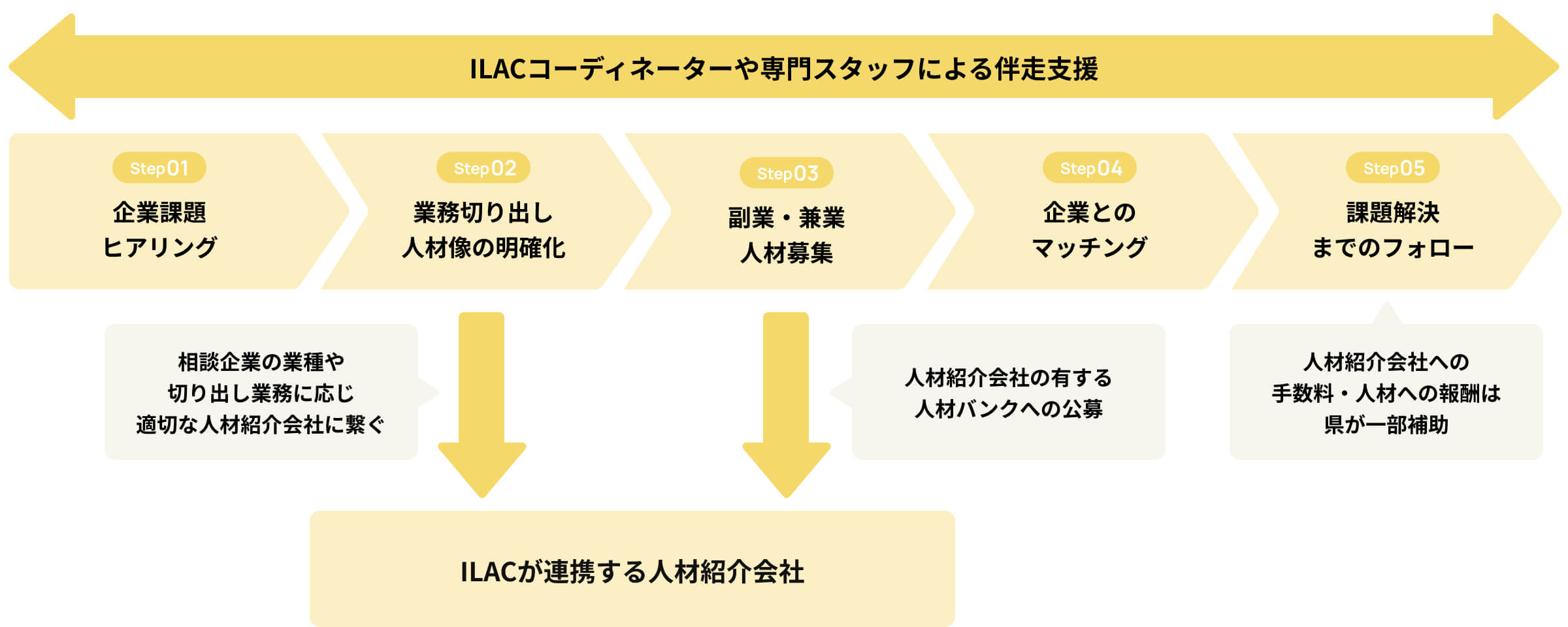 ※副業・兼業人材の活用にかかる経費の補助制度がございます。年度によって補助内容が変わりますので、ILACまでご相談ください。